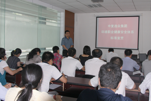 2009年7月16日,中復連眾集團舉行了環境(ISO14001)和職業健康安全(OHSAS18001)管理體系標準宣貫,標志著公司兩標一體認證工作進入實質性階段,本次貫標由省內著名指導老師主講,喬光輝總經理作重要動員,全體主管以上人員和內審員參加了培訓學習。